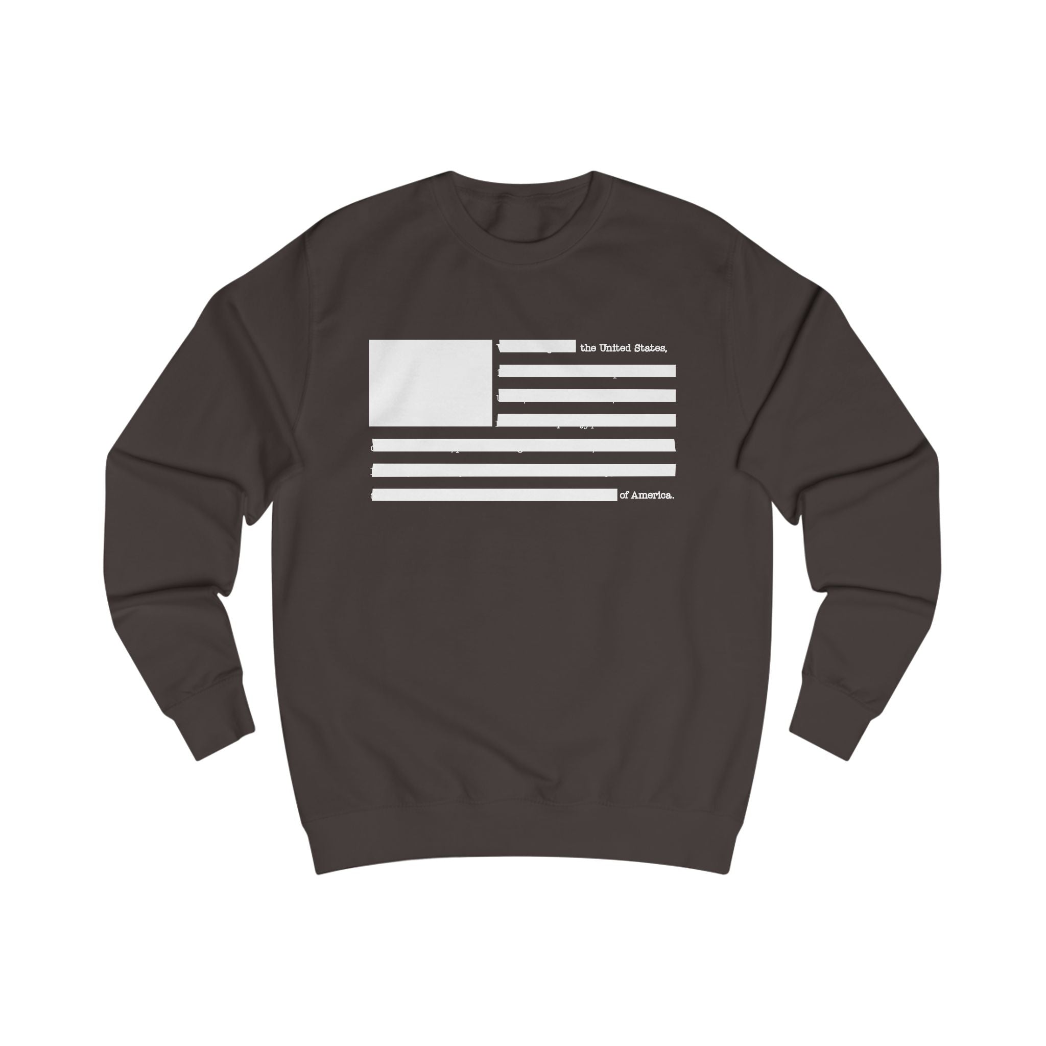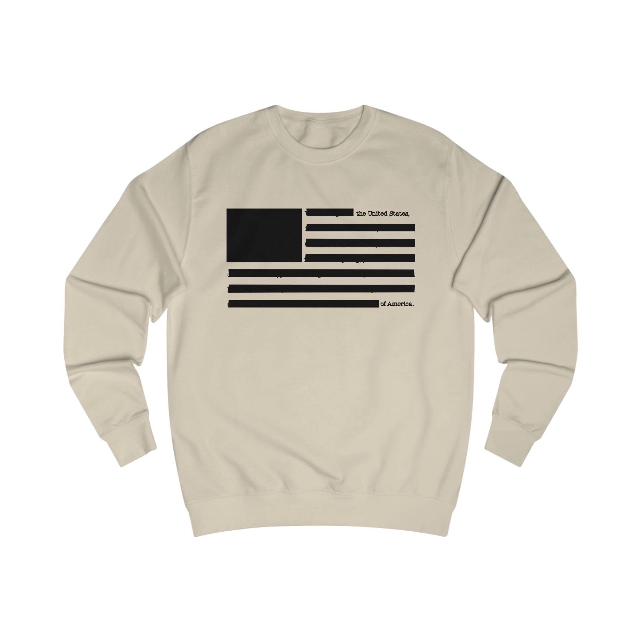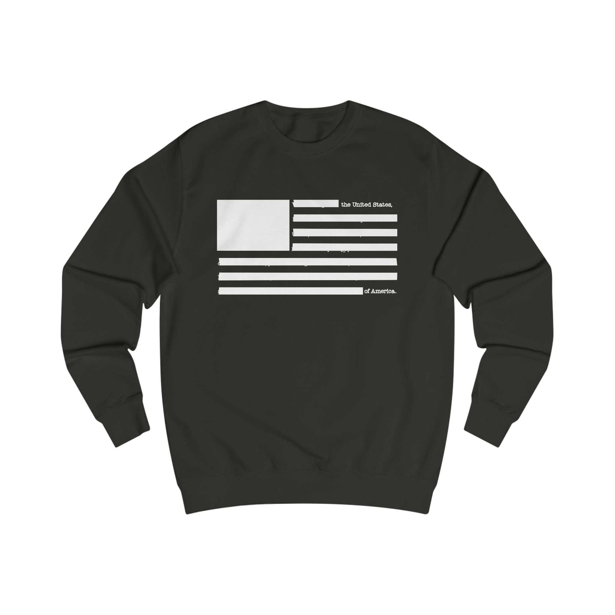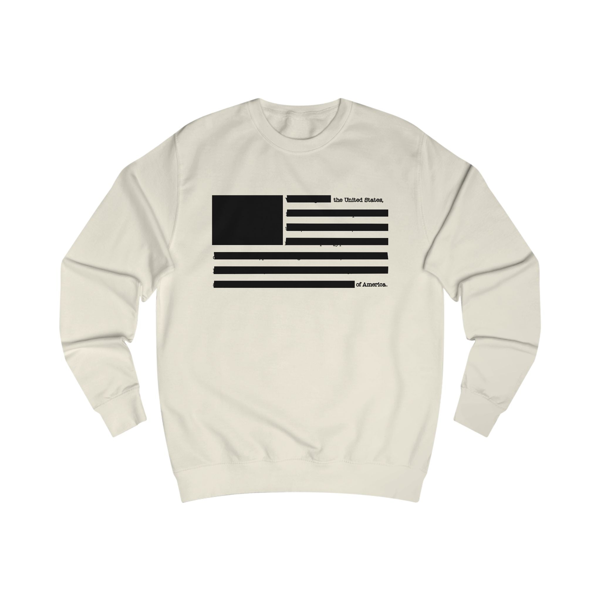 A clean, contemporary sweatshirt that speaks with quiet confidence. The front features a minimalist black flag motif rendered in bold bars and negative space — a graphic pause that reads like a statement without shouting. On the upper back, a small, hand-drawn style signature mark adds a personal, artisanal touch. The medium-heavy knit drapes with structure thanks to side seams and a ribbed collar, so it looks composed whether layered over a tee or worn on its own. Wear it to slow coffee mornings, late-night drives, or meetups where understated style matters. It settles into your rotation and becomes the sweatshirt you reach for when you want to feel steady and considered.