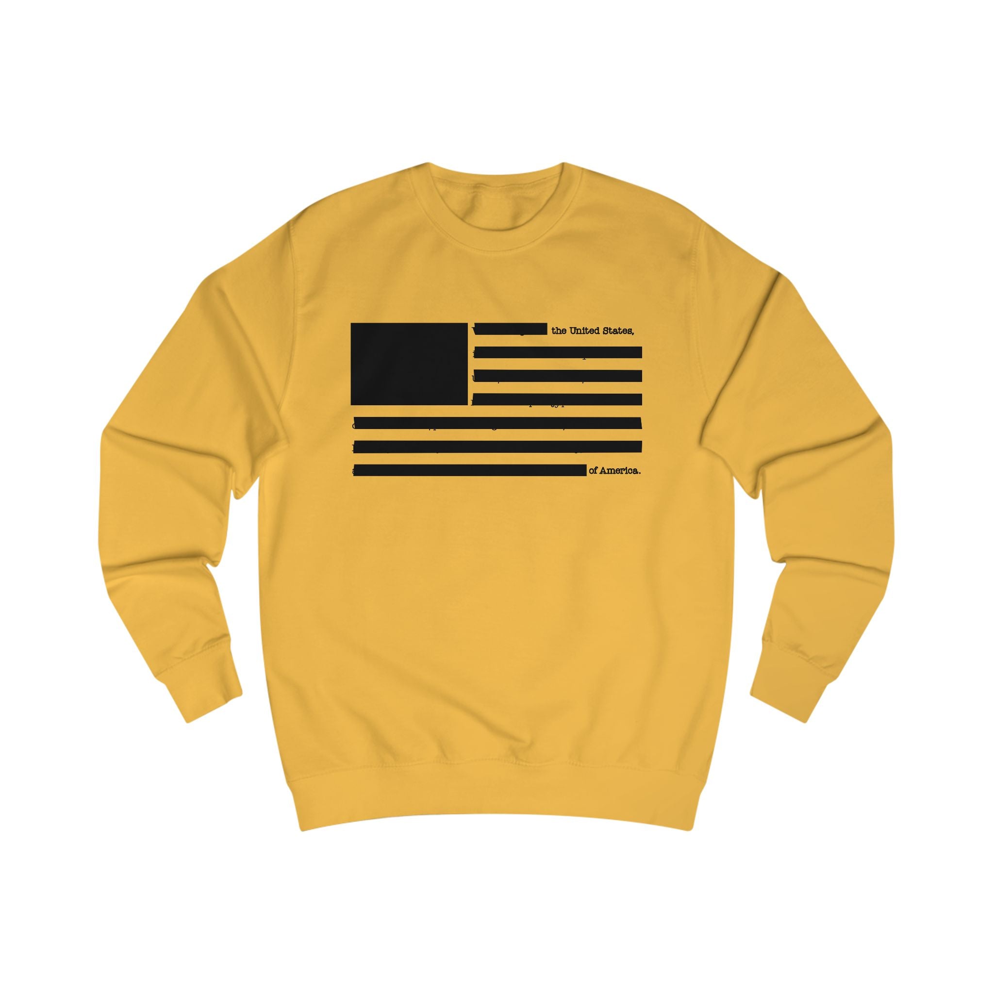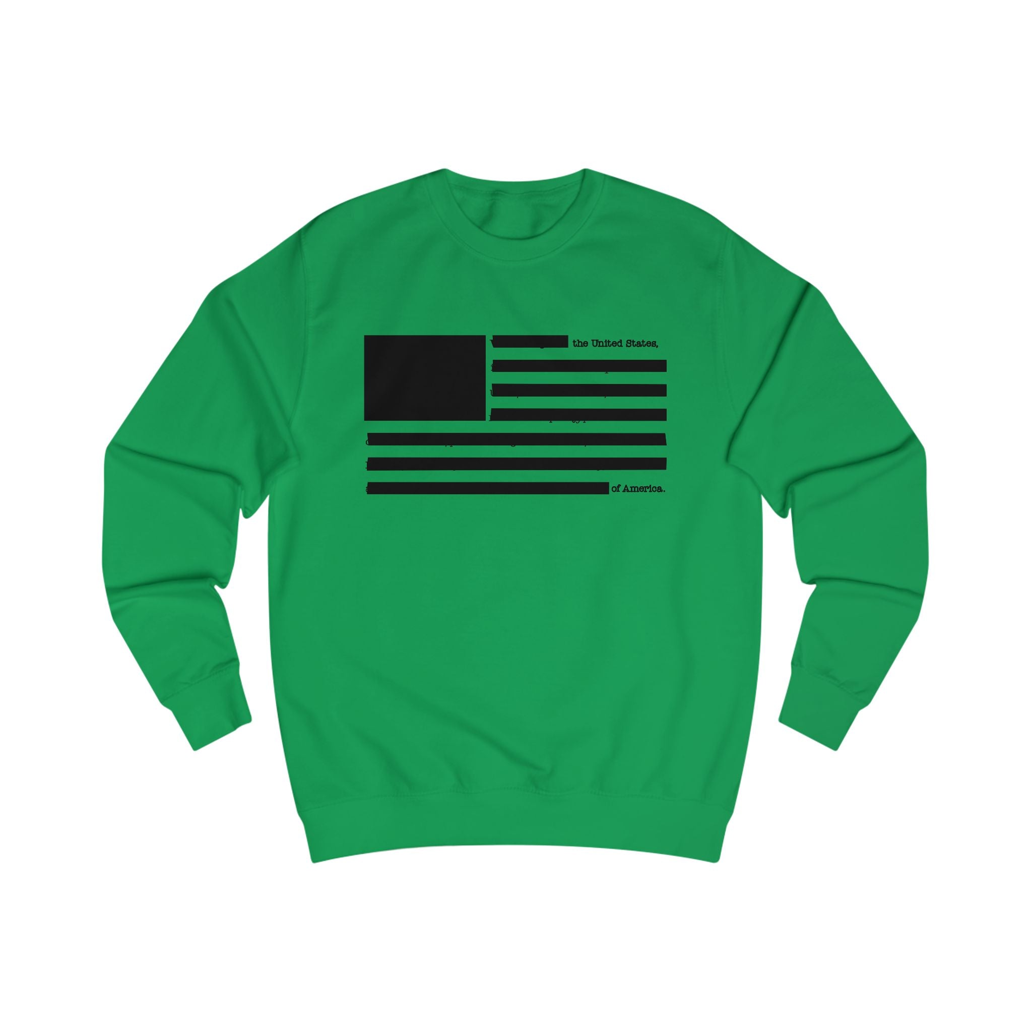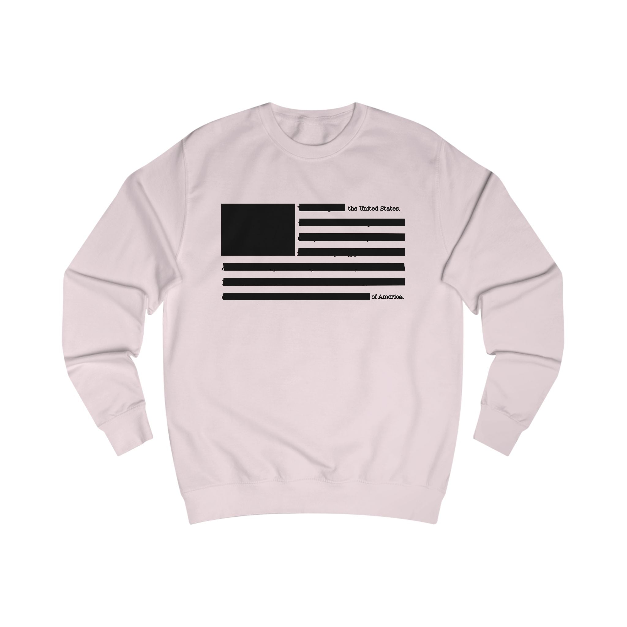 A clean, contemporary sweatshirt that speaks with quiet confidence. The front features a minimalist black flag motif rendered in bold bars and negative space — a graphic pause that reads like a statement without shouting. On the upper back, a small, hand-drawn style signature mark adds a personal, artisanal touch. The medium-heavy knit drapes with structure thanks to side seams and a ribbed collar, so it looks composed whether layered over a tee or worn on its own. Wear it to slow coffee mornings, late-night drives, or meetups where understated style matters. It settles into your rotation and becomes the sweatshirt you reach for when you want to feel steady and considered.