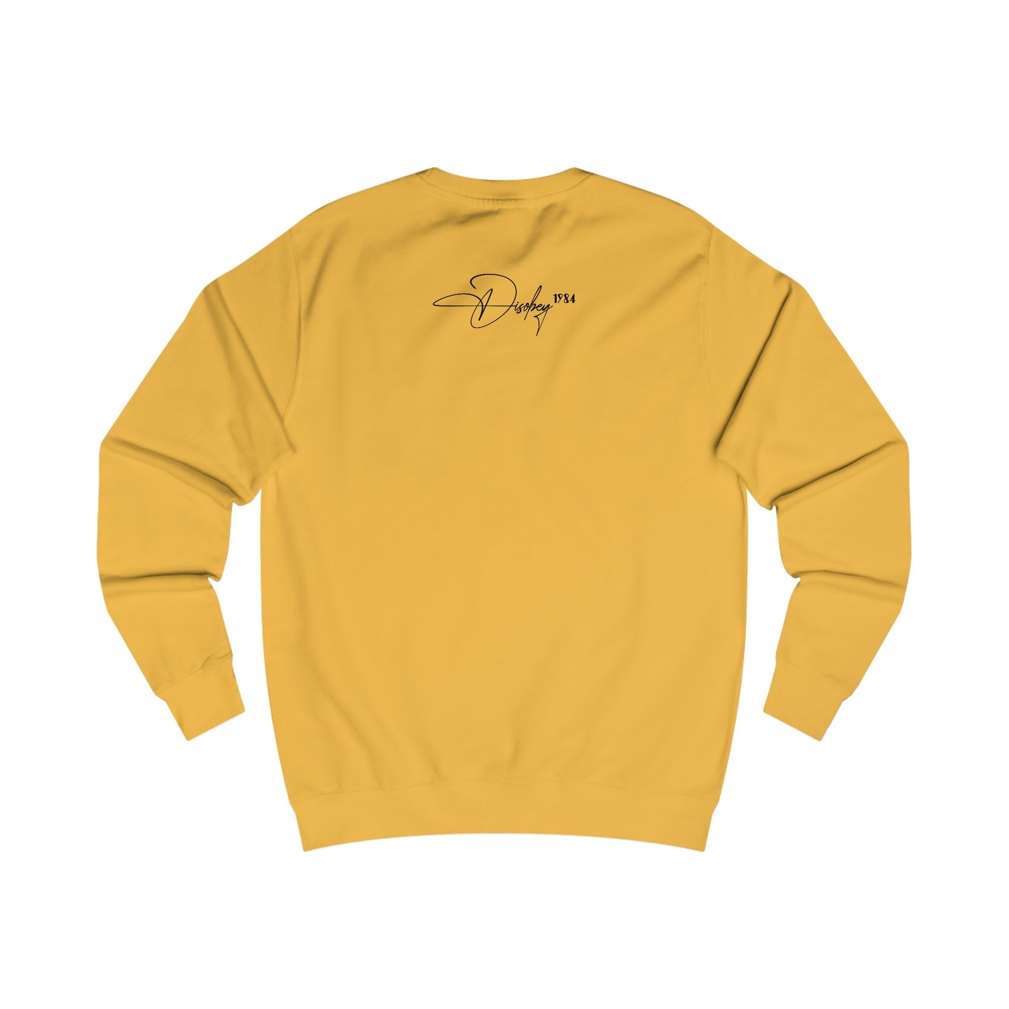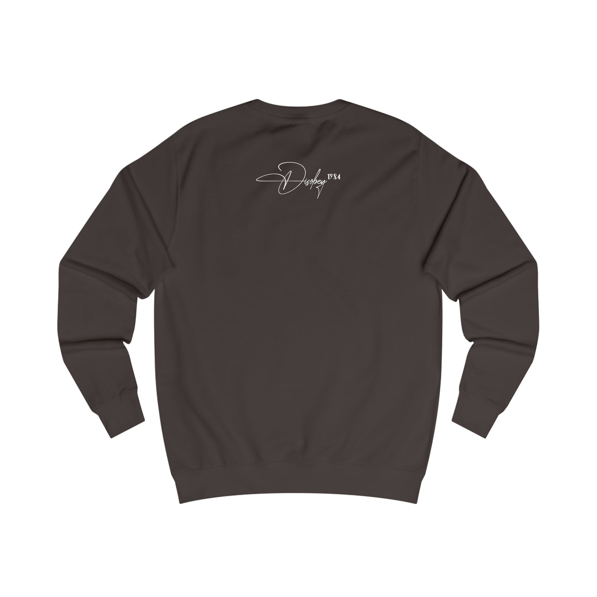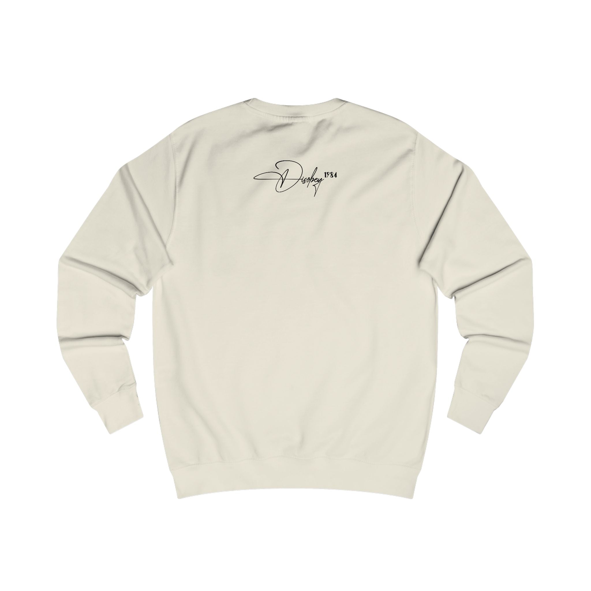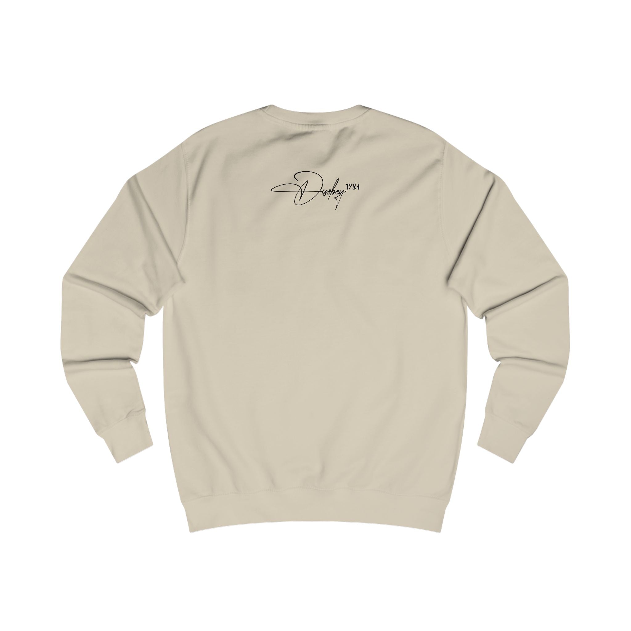 A clean, contemporary sweatshirt that speaks with quiet confidence. The front features a minimalist black flag motif rendered in bold bars and negative space — a graphic pause that reads like a statement without shouting. On the upper back, a small, hand-drawn style signature mark adds a personal, artisanal touch. The medium-heavy knit drapes with structure thanks to side seams and a ribbed collar, so it looks composed whether layered over a tee or worn on its own. Wear it to slow coffee mornings, late-night drives, or meetups where understated style matters. It settles into your rotation and becomes the sweatshirt you reach for when you want to feel steady and considered.