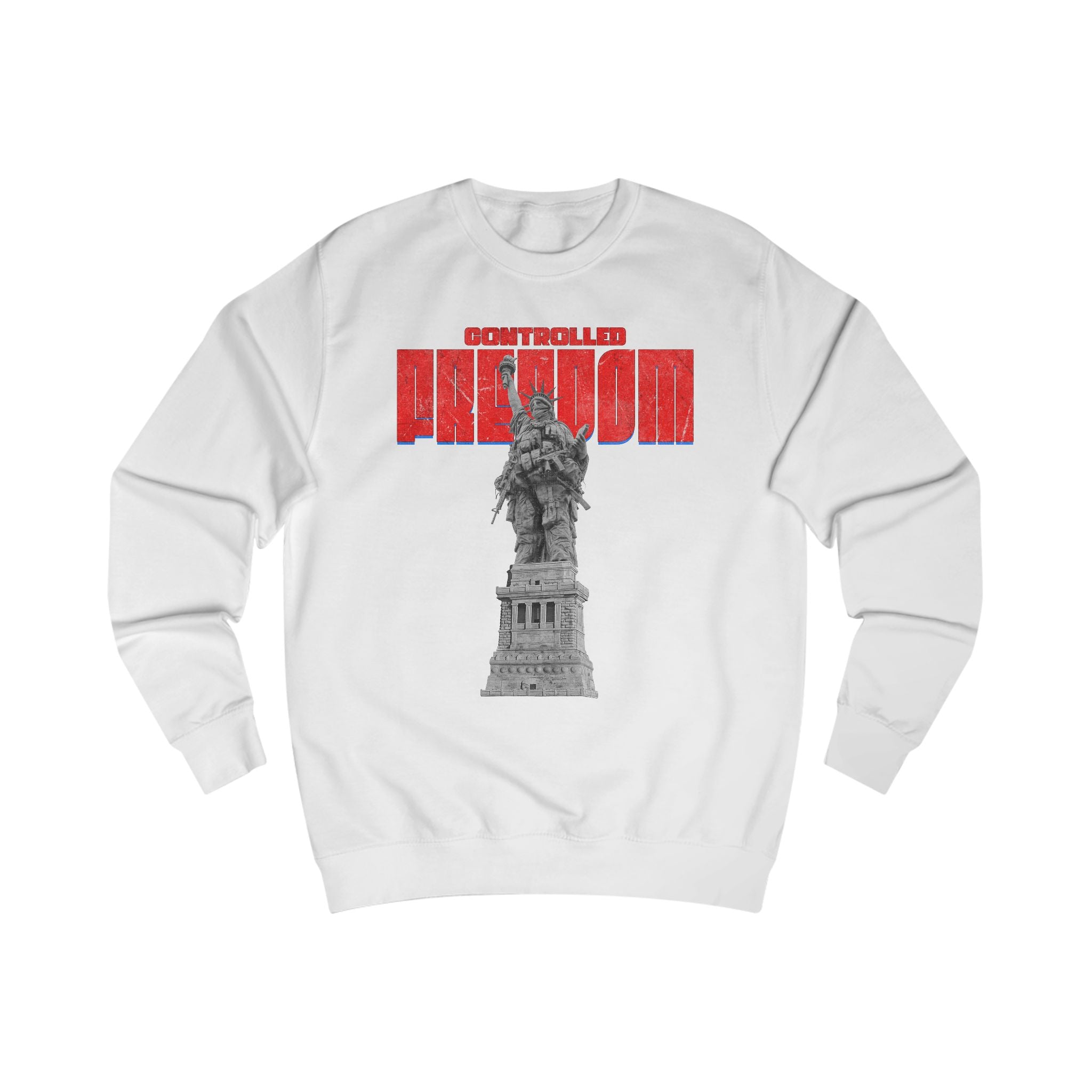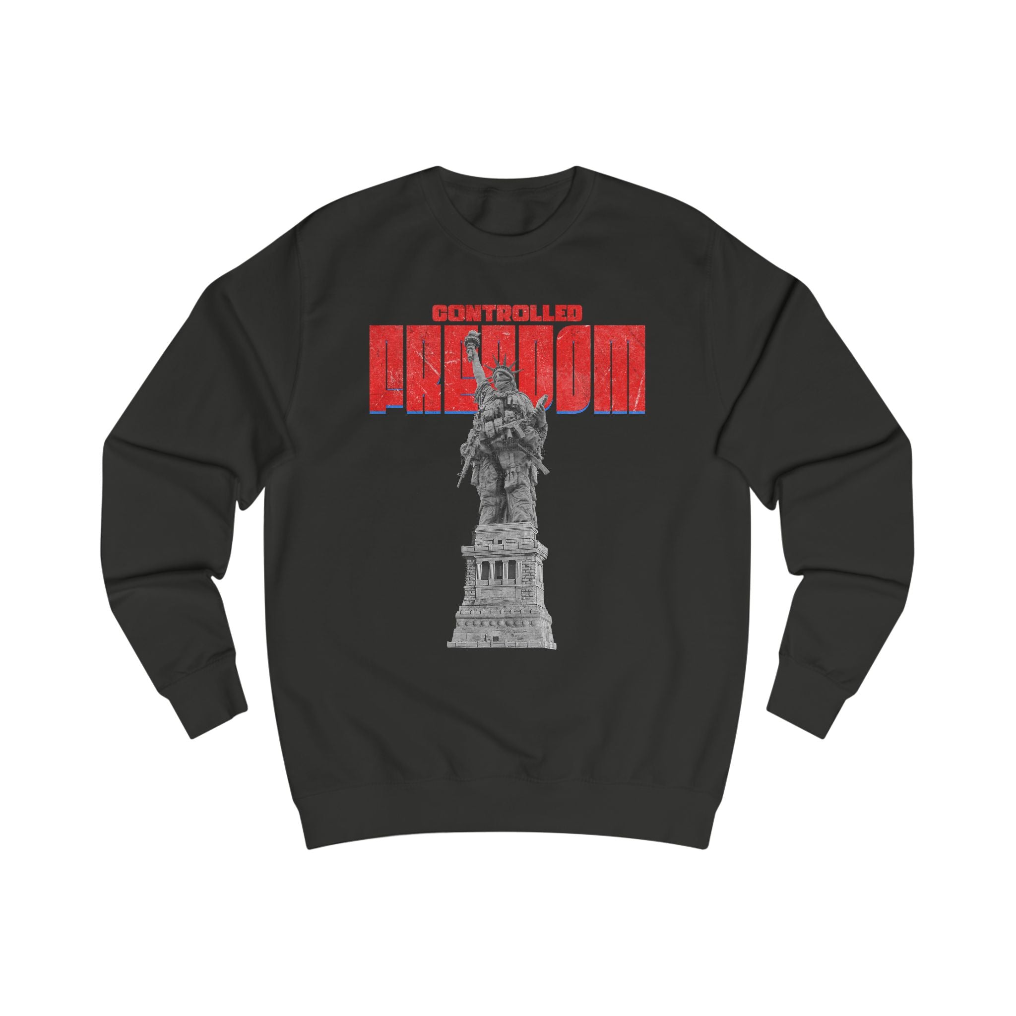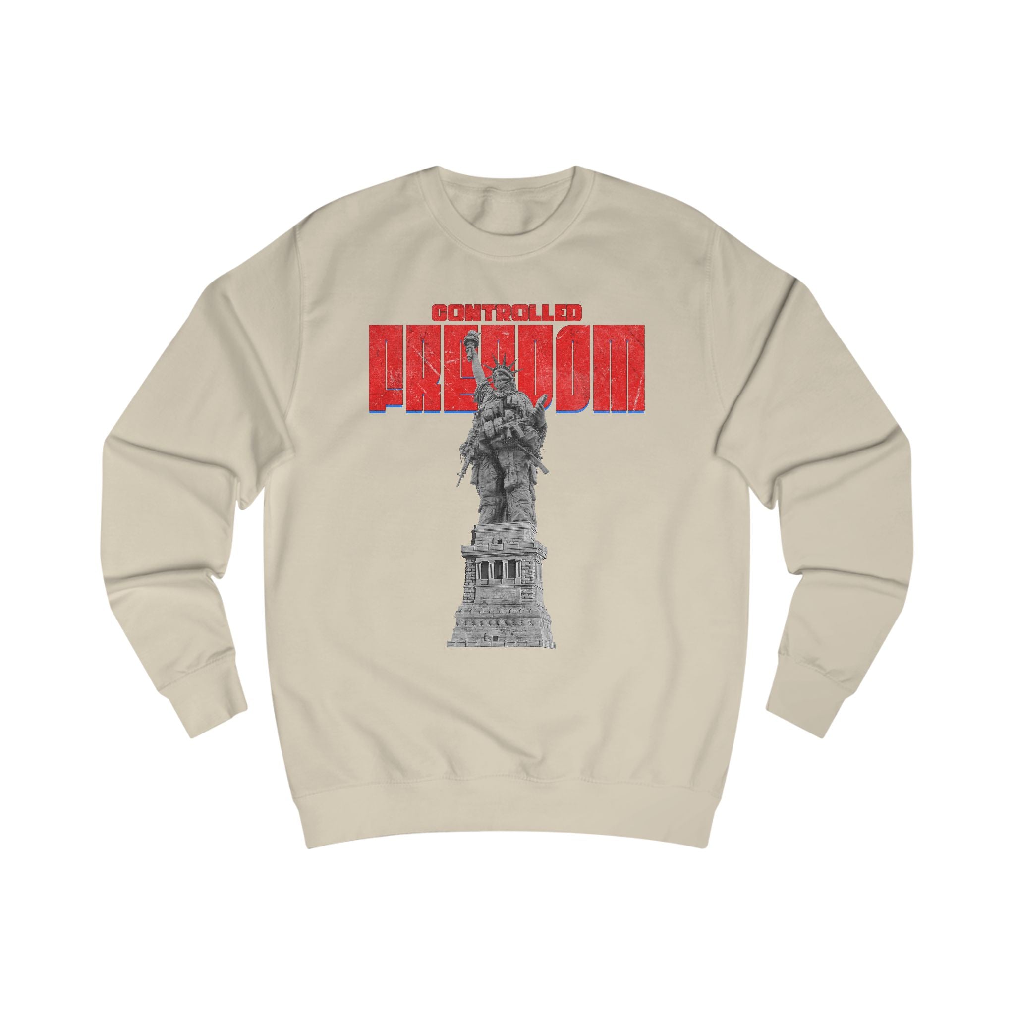 This sweatshirt carries a bold, contemplative energy — a graphic reimagining of the Statue of Liberty beneath striking red block lettering. It feels like street art turned wearable manifesto: rugged yet thoughtful, with an urban-patriotic edge. The medium-heavy fabric and structured side seams give it a substantial, lived-in drape that holds shape through repeated wear. Slip it on on chilly walks through the city, to late-night conversations on porch steps, or when you want to make a quiet statement about freedom and resilience. The understated script on the upper back adds an intimate, almost journal-like touch that reads like a personal motto rather than advertising. It’s for people who prefer meaning over slogans, who layer their outfits with intention and who appreciate tactile quality — roomy enough to move in, neat enough to layer under a jacket, and textured enough to stand out in a crowd.