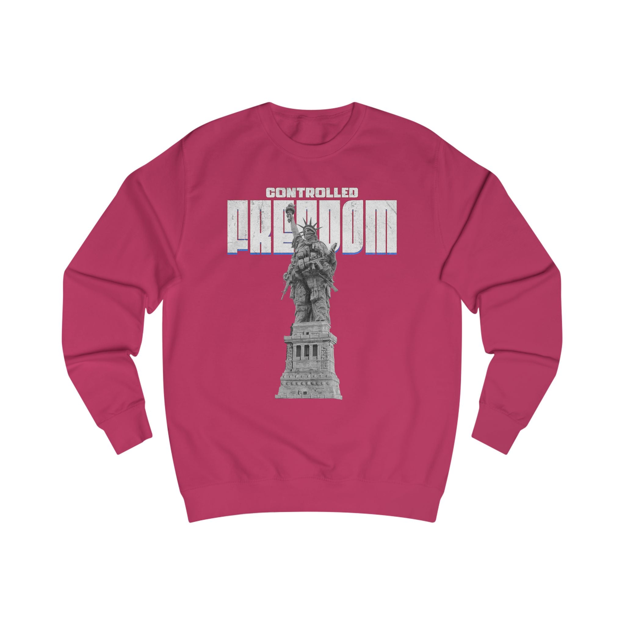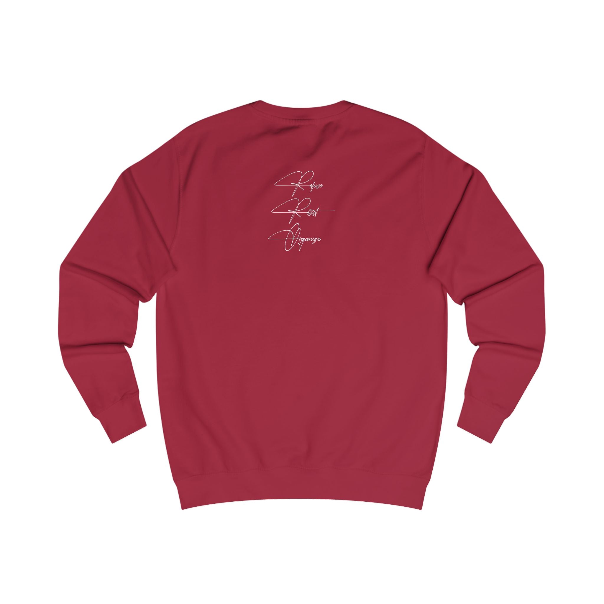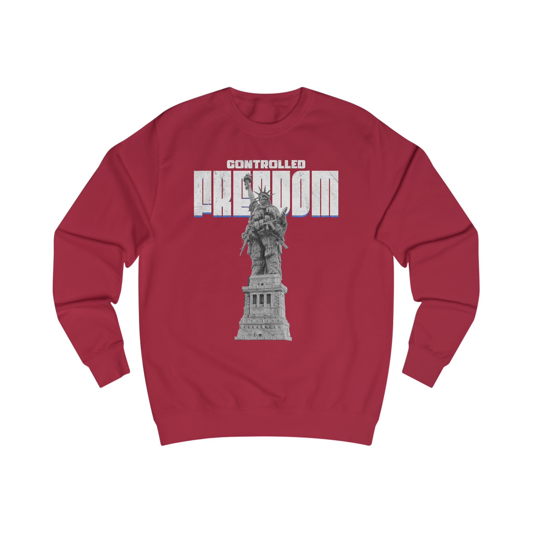 This sweatshirt carries a bold, contemplative energy — a graphic reimagining of the Statue of Liberty beneath striking red block lettering. It feels like street art turned wearable manifesto: rugged yet thoughtful, with an urban-patriotic edge. The medium-heavy fabric and structured side seams give it a substantial, lived-in drape that holds shape through repeated wear. Slip it on on chilly walks through the city, to late-night conversations on porch steps, or when you want to make a quiet statement about freedom and resilience. The understated script on the upper back adds an intimate, almost journal-like touch that reads like a personal motto rather than advertising. It’s for people who prefer meaning over slogans, who layer their outfits with intention and who appreciate tactile quality — roomy enough to move in, neat enough to layer under a jacket, and textured enough to stand out in a crowd.